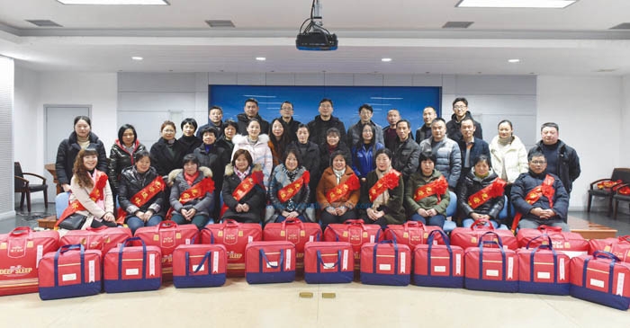 会后,大家合影留念,并为退休老员工发放了纪念品。