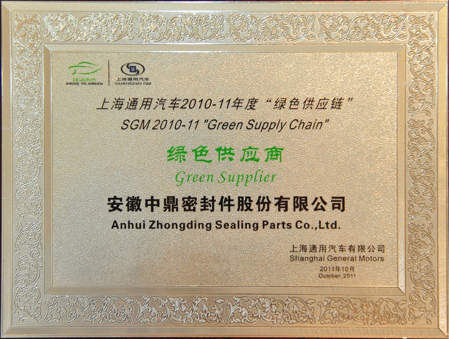 上汽通用绿色供应商(2010-2...