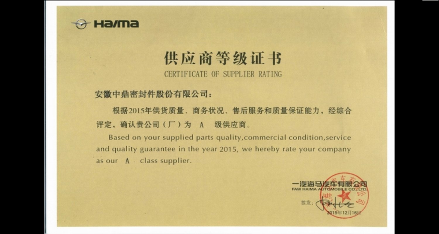 一汽海马A级供应商(2015年)...