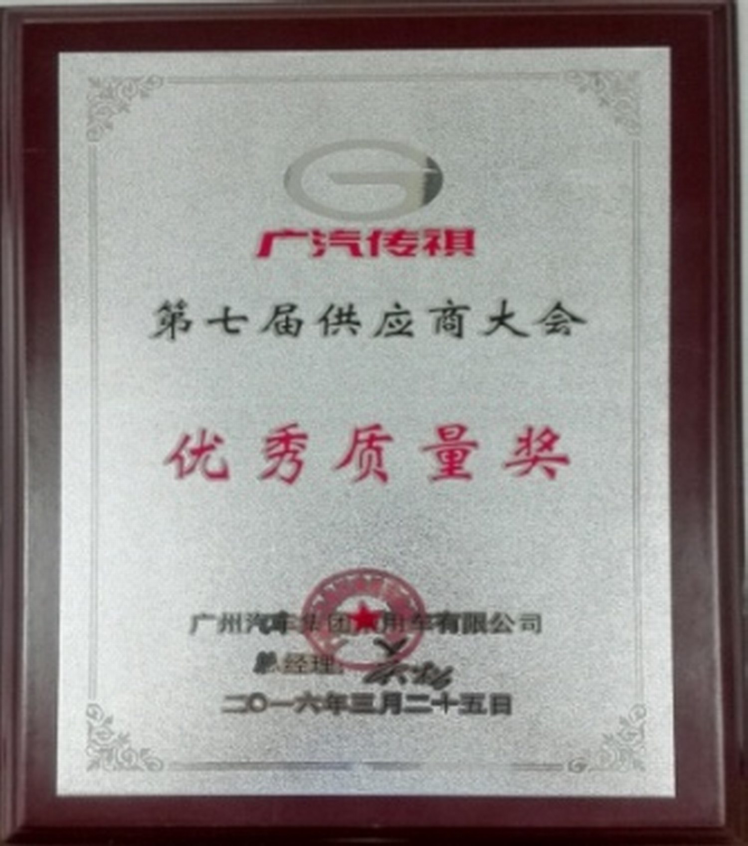 广汽传祺 优秀质量奖(2016...