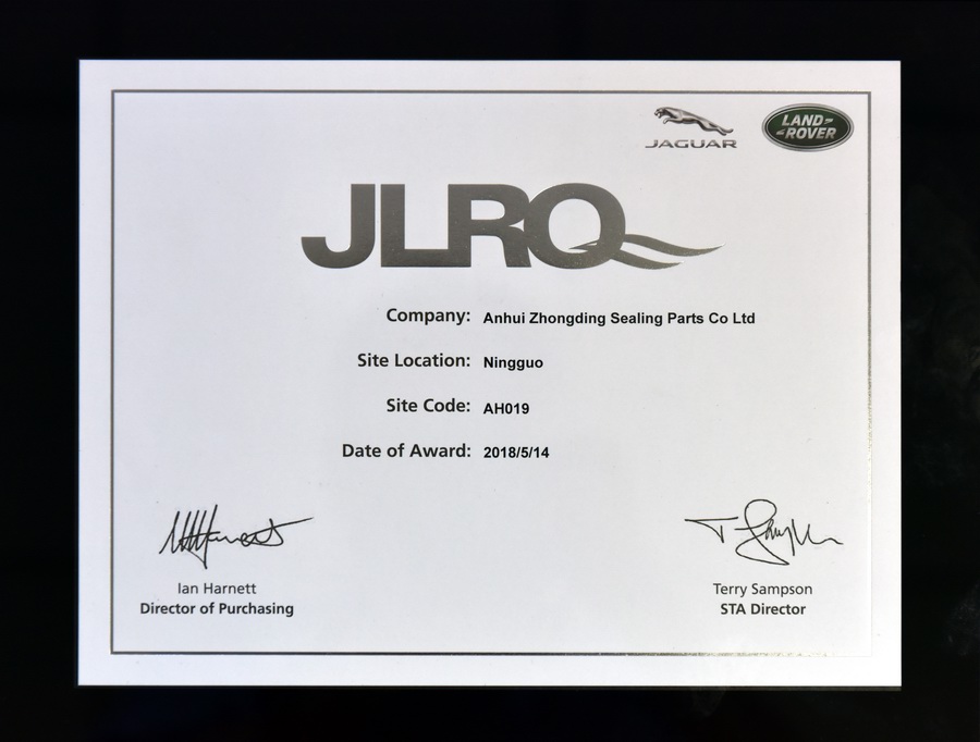 捷豹路虎 质量认证证书(20...