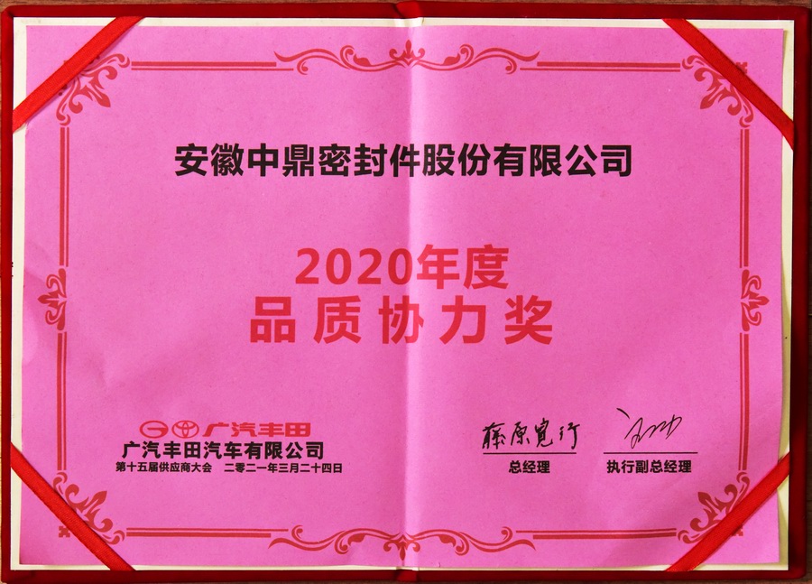 广汽丰田 品质协力奖(2020年...