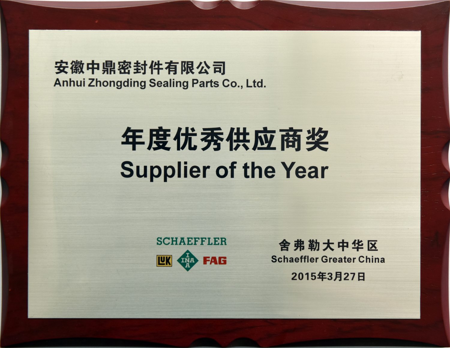 舍弗勒 优秀供应商(2015年...